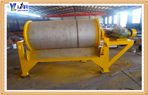 分选矿物通过振动给料器均匀地送到分选筒的上部,旋转的筒体把非磁性物料抛离筒体,磁性物料受到强磁场力作用吸向筒体,用分矿板很方便、精确地将磁性、非磁性物料分离。如低品位磁铁矿、河砂、钢渣的分选,经本机初选抛去多余尾矿,使贫矿品位得到富集。干式磁选机要求被分选的矿物干燥,颗粒之间可以自由移动、成独立的自由状态,否则会影响磁选效果,甚至会造成不可分选的后果。