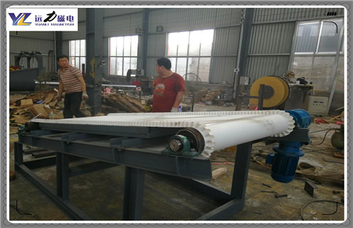高梯度平板磁选机,采用带式分选结构,在整个工作区域从进料到出料,物料在皮带的带动下,可对物料进行多次磁搅拌,同时在水流的冲洗作用下,把不含磁的尾矿除去,带有磁性的矿物被皮带输送到板选机的脱磁区,从而将带有磁性的矿物通过脱磁装置脱掉,来完成选矿的过程,整机功率小、处理大,磁场强度高,并达到很好的品质,能够获得更大的效益。 DSQC平板磁选机主要适用于粒度5mm以下的弱磁性矿物的矿选及非金属矿物的除铁,如:云母粉、石英砂、钾长石、霞石、萤石、硅线石、锂辉石、高岭土、锰矿、弱磁铁矿、磁黄铁矿、焙烧矿、钛铁矿、赤铁矿、褐铁矿、菱铁矿、钛铁矿、铬铁矿、黑钨矿、钽铌矿、赤泥等。也可用于煤、非金属矿、建材等行业的除铁作业。尤其是对于赤铁矿、褐铁矿、镜铁矿、石榴石、菱铁矿、锰矿、钽铌矿等微弱磁性矿物具有较好的选别效果。